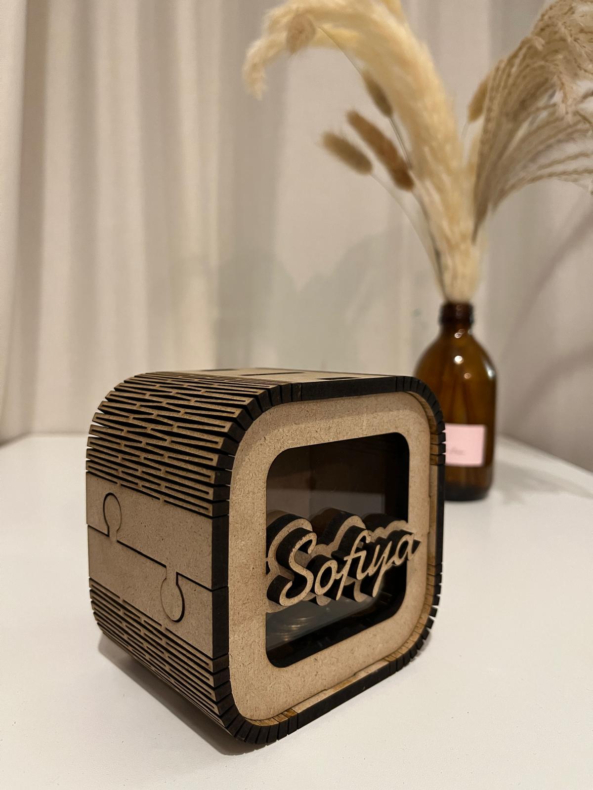 קופת חיסכון קטנה עם שם בעיצוב אישי